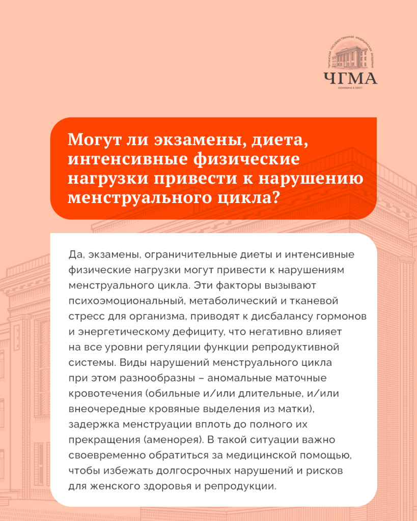 -  Татьяна Евгеньевна, могут ли экзамены, диета, интенсивные физические нагрузки привести к нарушению менструального цикла?