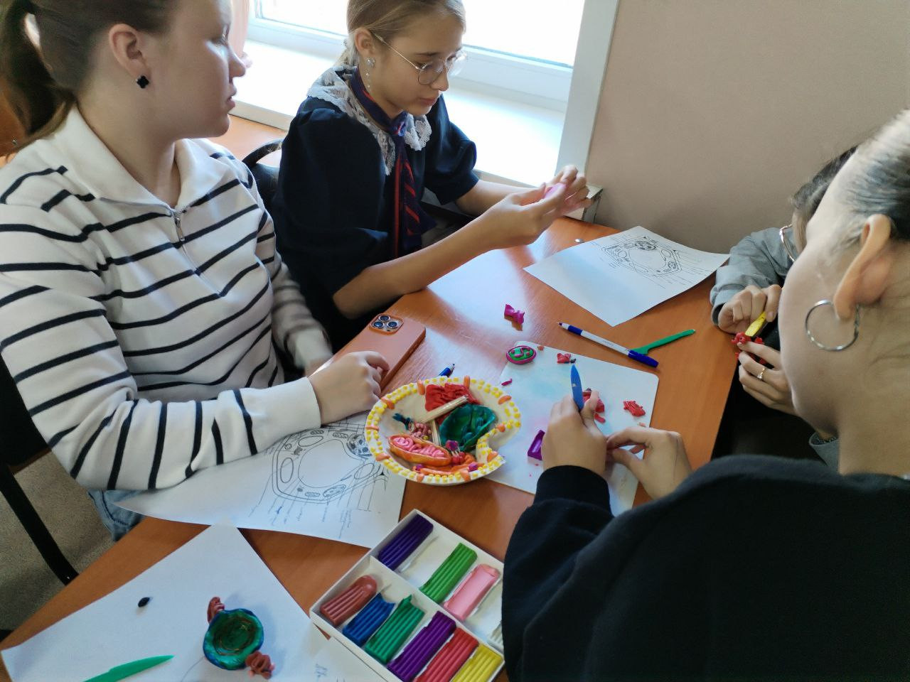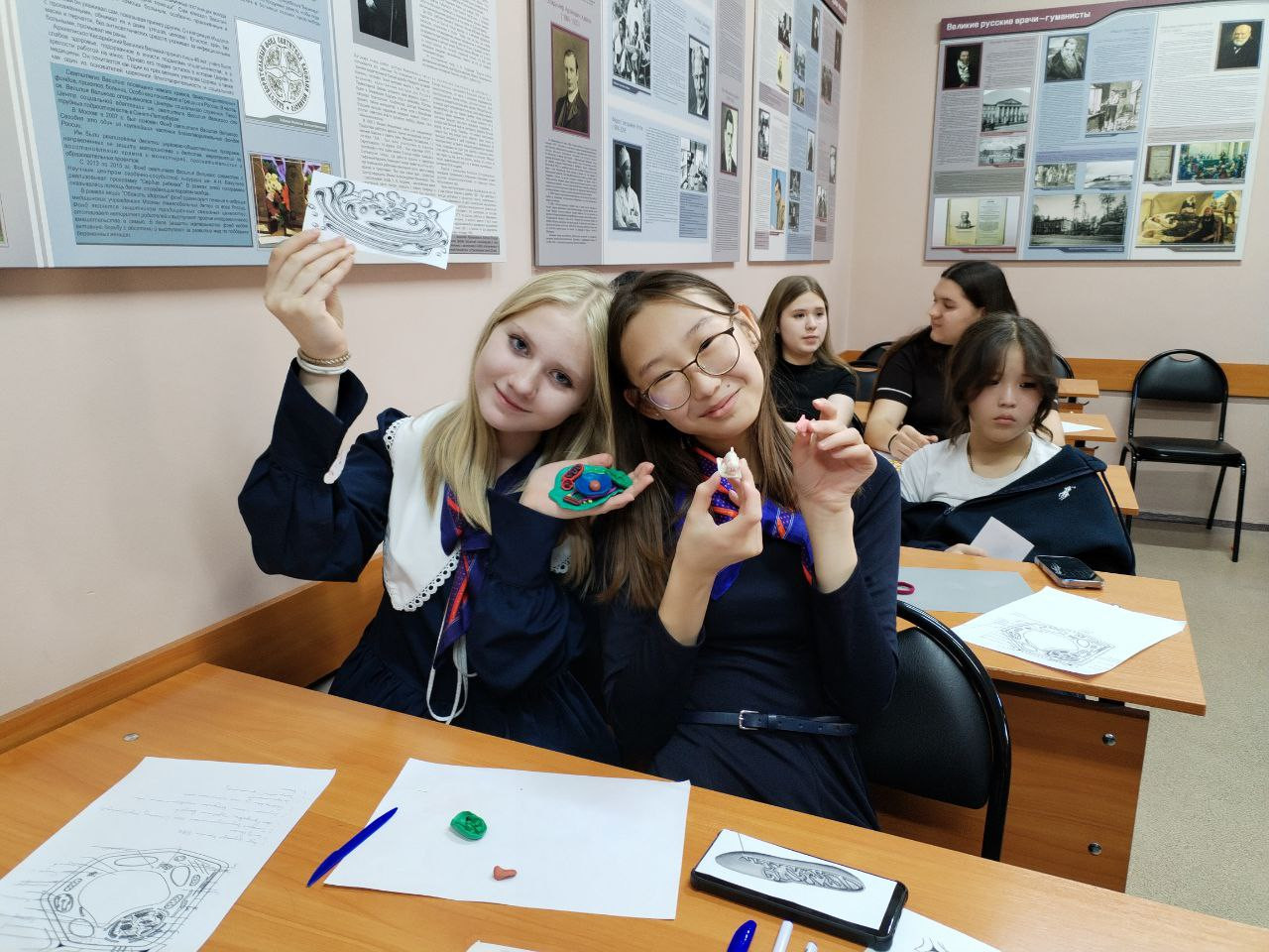 Тем временем восьмиклассники занялись биологией. Участники третьей ступени обучения в проекте ЧГМА «Школа юного медика» побывали на занятии у педагога дополнительного образования Центра довузовской подготовки Людмилы Анатольевны Ковалевой. Дети изучили строение растительной и животной клетки, их особенности, повторили и закрепили школьные знания. После занятий ребята сами слепили яркие модели клеток из пластилина - получилось круто и наглядно.