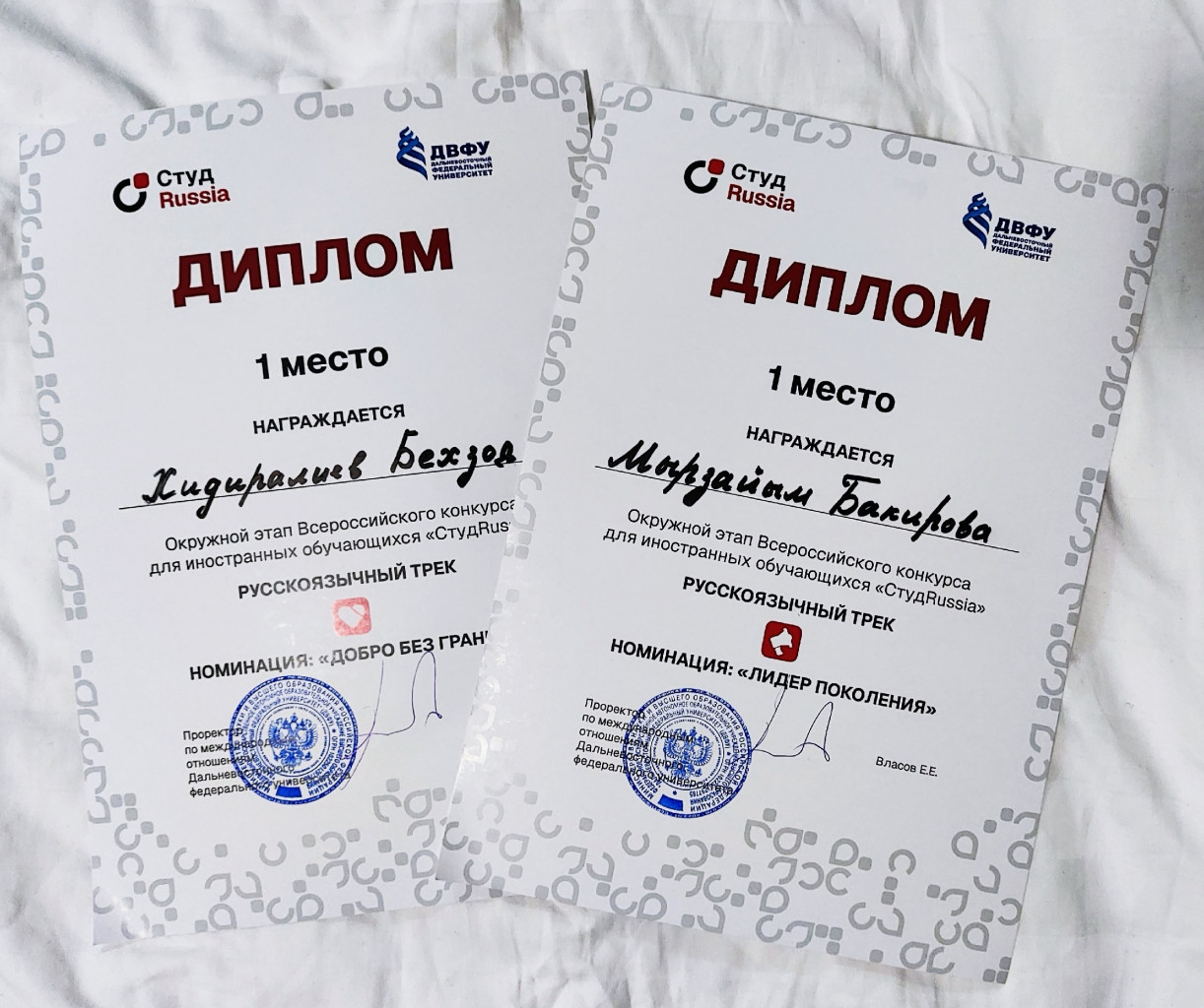 Несмотря на серьезную конкуренцию – в конкурсе участвовало более 100 человек, 67 из Дальневосточного федерального округа, а остальные из других регионов России – наши ребята отлично выступили и стали победителями в номинациях «Добро без границ» и «Лидер поколения»!