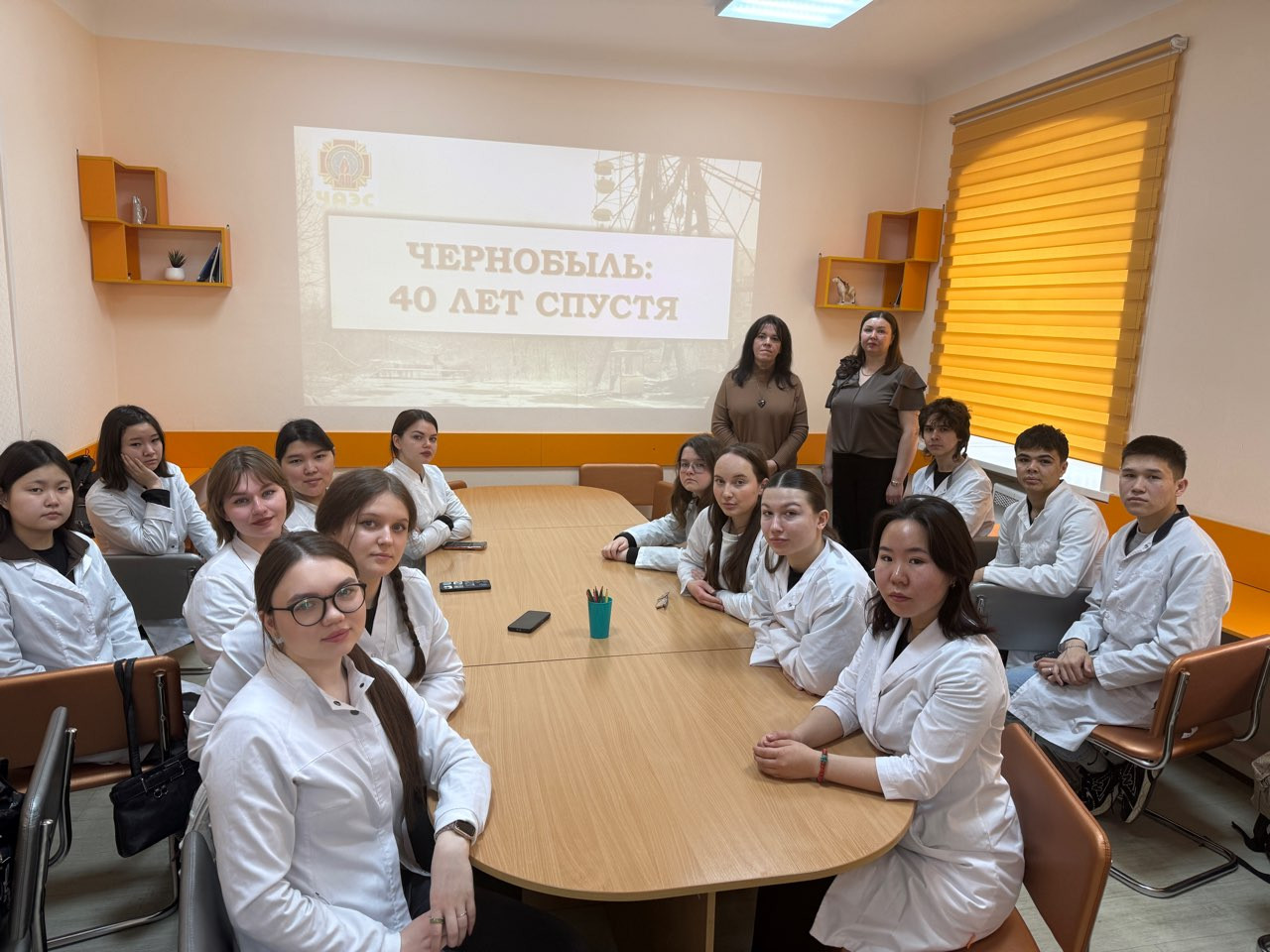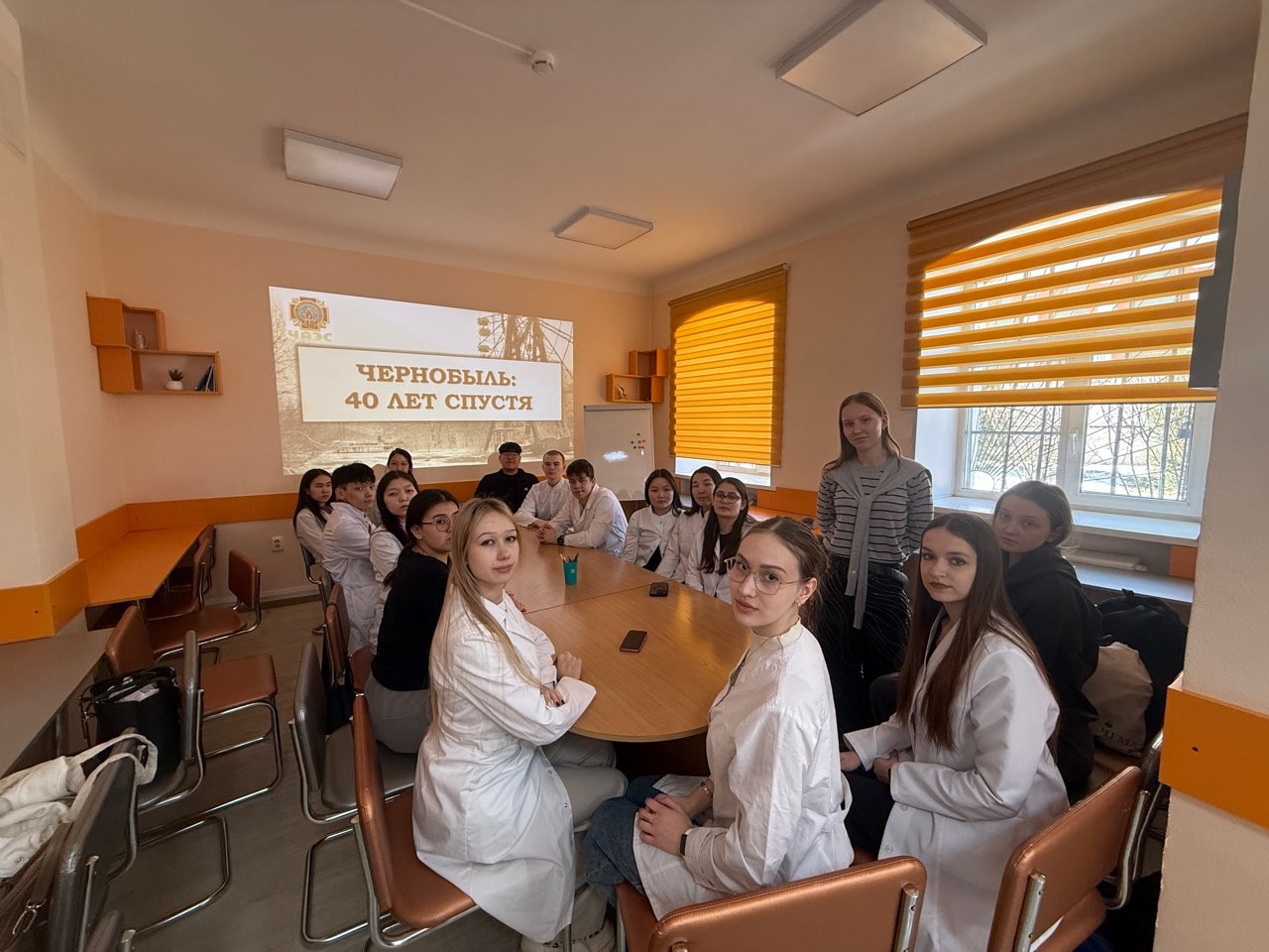В рамках мероприятий, посвящённых 40-летию со дня аварии, для студентов лечебного и стоматологического факультетов 21 и 22 апреля был проведён урок мужества. Обучающиеся познакомились с причинами и масштабами катастрофы, узнали о героизме ликвидаторов и значении их самоотверженного труда. Особое внимание было уделено роли медицинских работников, которые оказывали помощь пострадавшим, зачастую рискуя собственной жизнью и здоровьем. Важное место в мероприятии заняли материалы об участии забайкальцев в ликвидации последствий аварии, позволившие студентам глубже осознать вклад земляков и почувствовать сопричастность к событиям национальной истории.