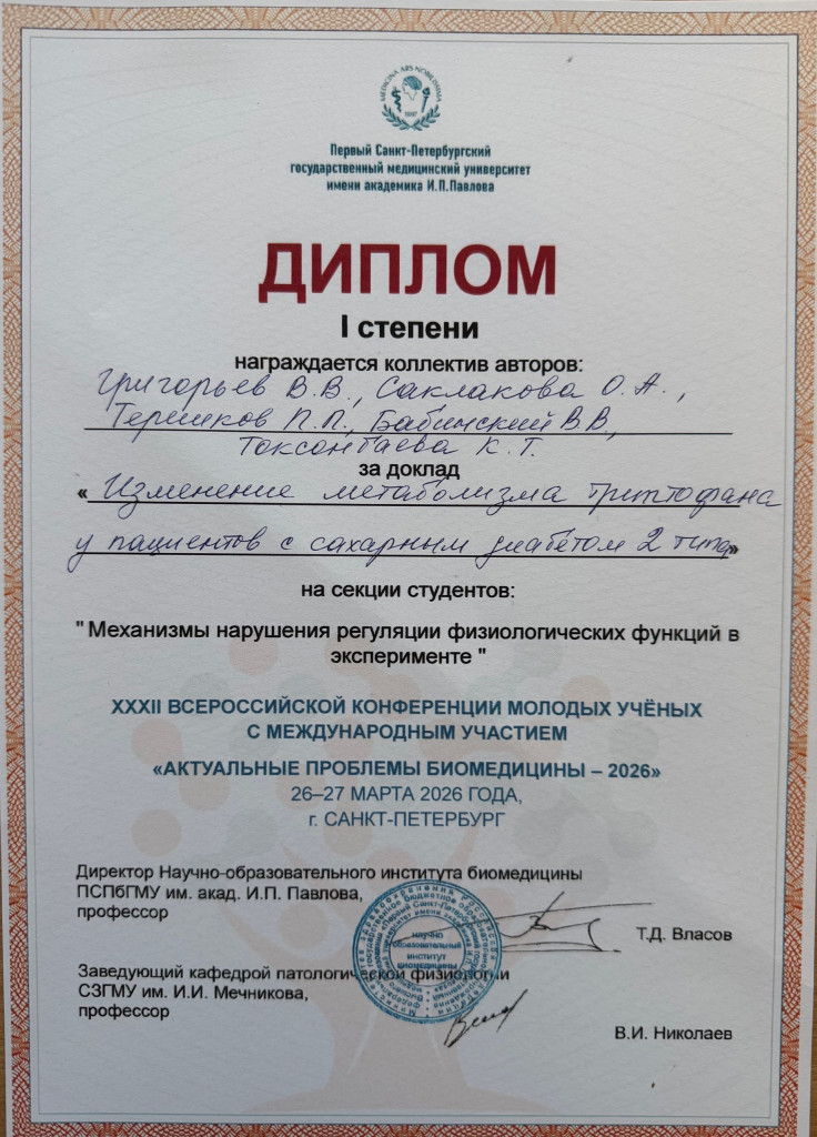 Абитуриенту26–27 марта 2026 года на базе Первого Санкт-Петербургского государственного медицинского университета имени академика И.П. Павлова состоялась XXXII Всероссийская конференция молодых учёных с международным участием «Актуальные проблемы биомедицины – 2026». Читинская государственная медицинская академия приняла активное участие в мероприятии. Студенты педиатрического факультета выступили с докладами под научным руководством профессора кафедры патологической физиологии, д.м.н., доцента Фефеловой Елены Викторовны.