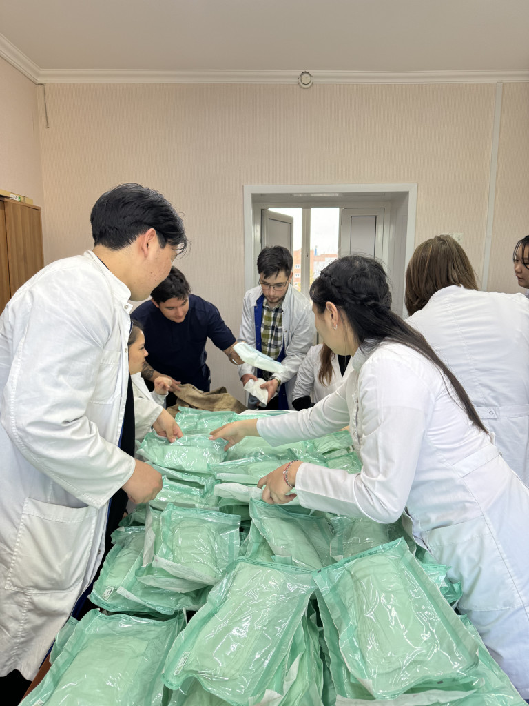 АбитуриентуПо просьбе военных медиков Луганской Народной Республики студенты 605 группы лечебного факультета Читинской государственной медицинской академии под руководством доцента кафедры госпитальной хирургии Крюковой Виктории Викторовны во внеучебное время изготовили 500 стерильных перевязочных наборов.