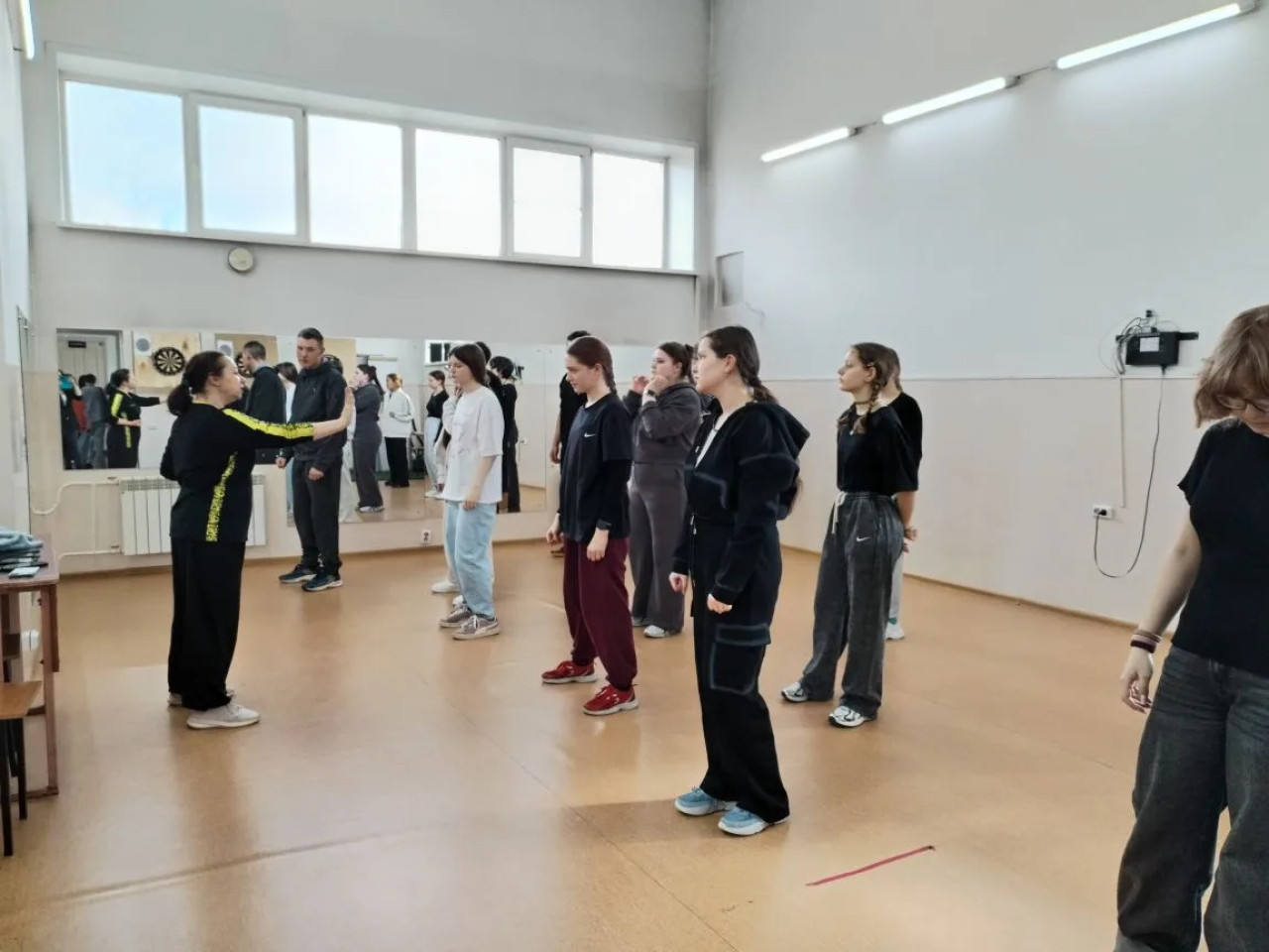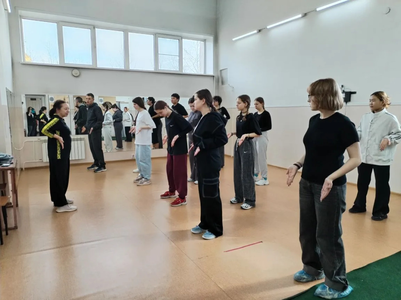 Станция 3: Оздоровительная гимнастика ушу. Гармония тела и духа — именно это подарила третья станция. Под чутким руководством Светланы Антоновны ребята освоили базовые элементы дыхательной гимнастики и плавные движения, направленные на укрепление опорно-двигательного аппарата и концентрацию внимания. Это отличный пример того, как древняя практика помогает сохранять продуктивность в современном ритме жизни.