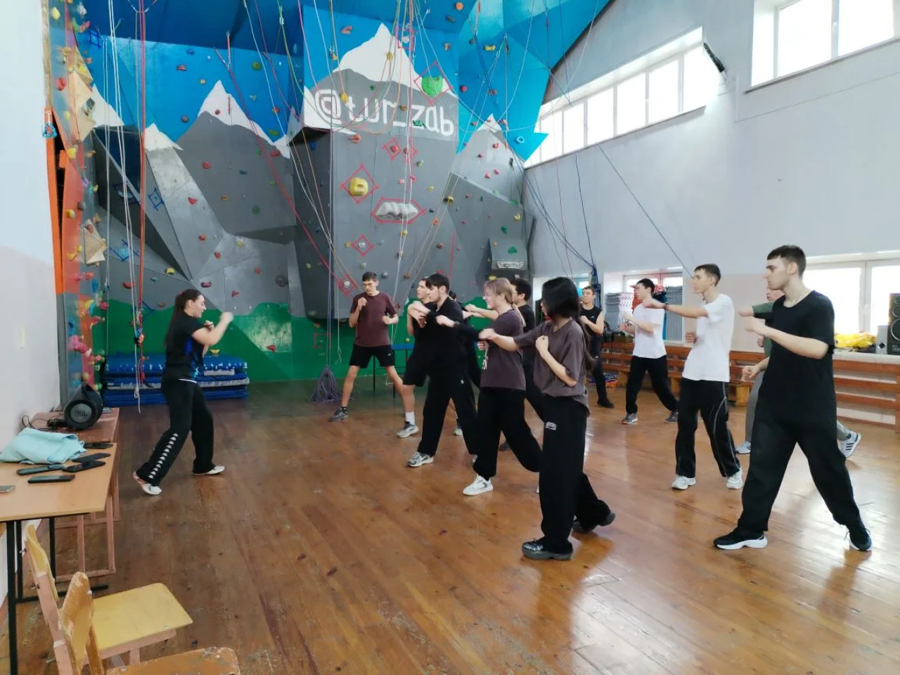 Станция 1: Аэробика. Здесь царила энергия и ритм! Ребята разучили связки современных движений, поработали над координацией и выносливостью. Виктория Сергеевна показала, как аэробные направления помогают снять стресс — навык, необходимый не только в спорте, но и в медицинской профессии.