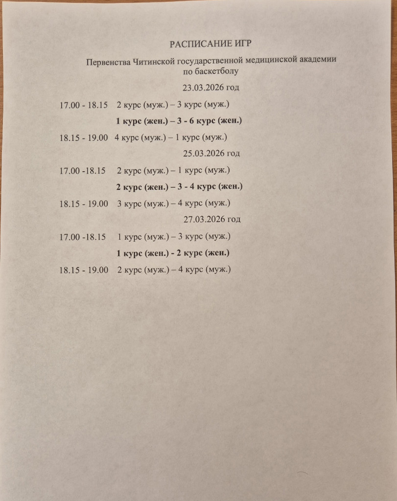 Приглашаем принять участие и поддержать команды в Первенстве Читинской государственной медицинской академии по баскетболу среди студентов!