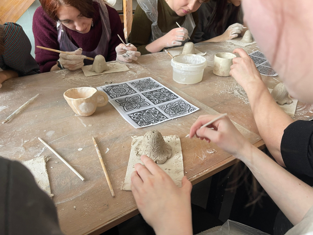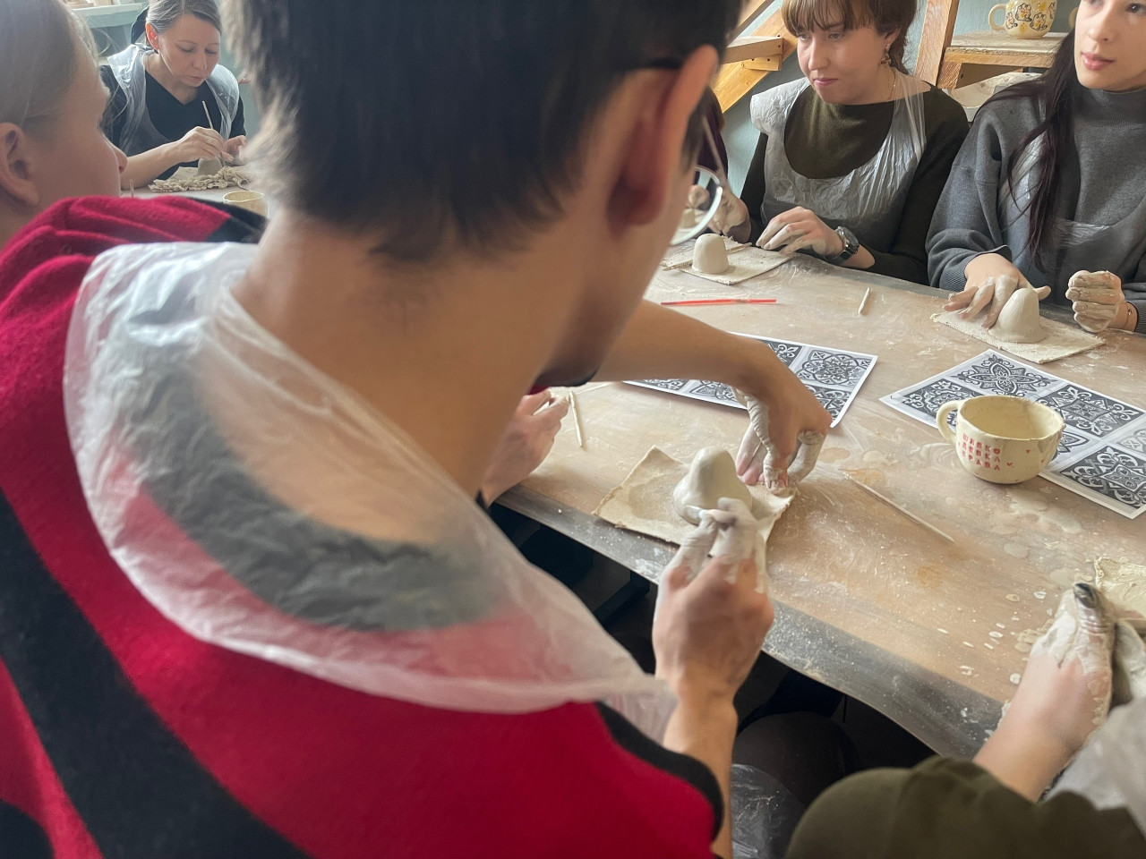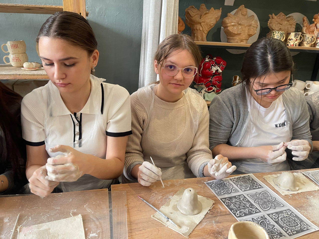 «Как здорово, что я оказалась на мастер-классе, обстановка студии, уникальный инструмент – гончарный круг поразили меня, такая тонкая работа мастера на круге, очень похожа на работу хирурга. Я поработала с глиной, слышала о таких мастер-классах, но не была на них. Удивительная возможность», – поделилась студентка 4 курса Наталья Шкапий.