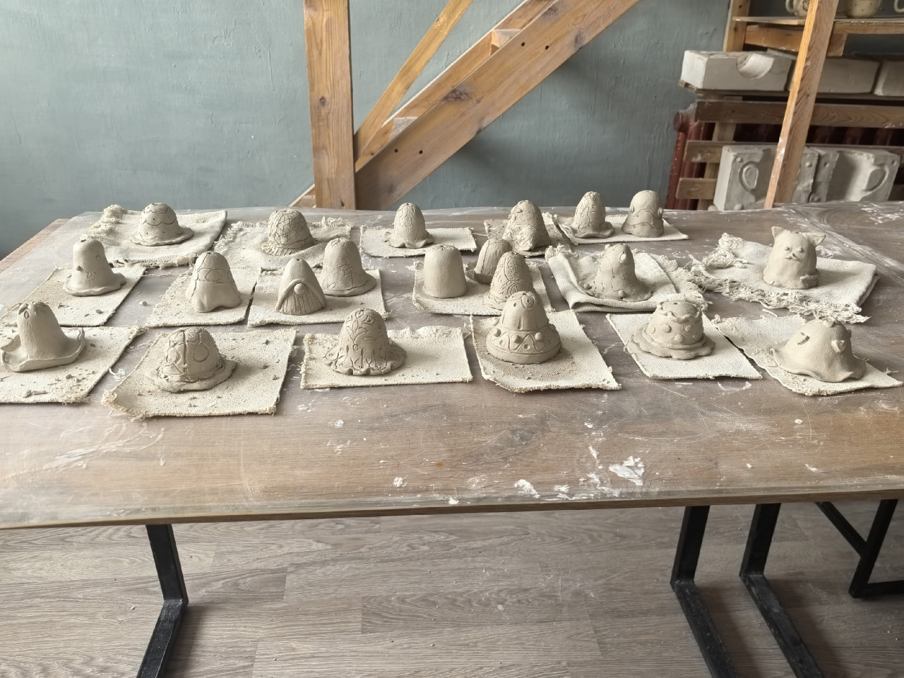 А затем все участники попробовали сделать из глины колокольчик. Полет фантазии студентов поразил мастера: классический колокольчик, колокольчик-кошка, колокольчик, оформленный сердцами, колокольчик с морскими волнами…Изделия студентов остались в мастерской, где пройдет их обжиг, а затем они вернуться в руки авторов.