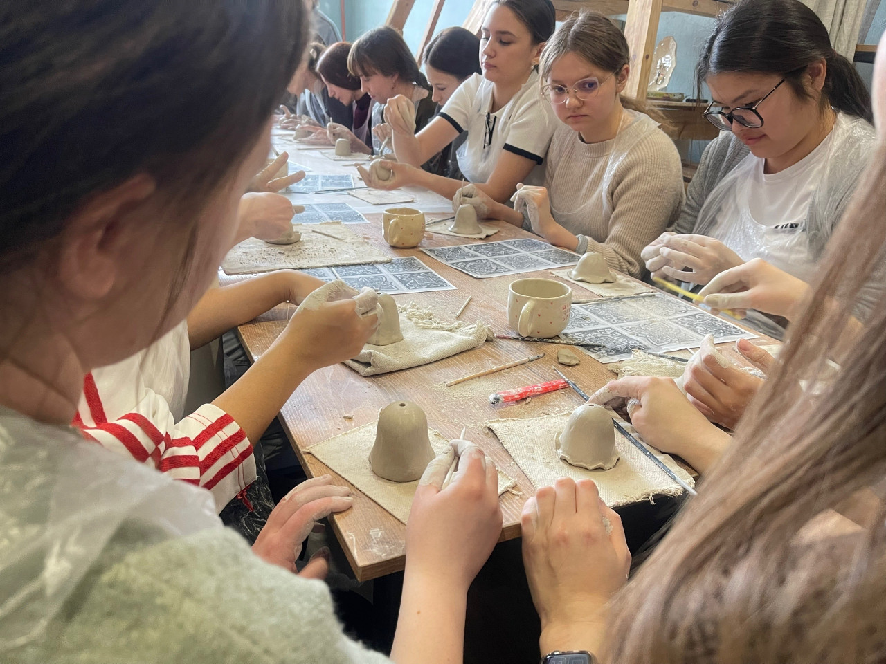 Из чего состоит глина? Что такое гончарный круг? Как он работает? Как придать глиняному изделию форму? Эти и другие вопросы задавали студенты-медики на мастер-классе «Корни русской культуры: гончарное искусство», который прошел в мастерской Забайкальского отделения художников Союза художников России.