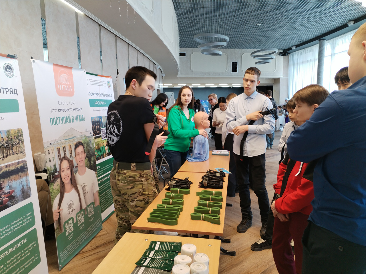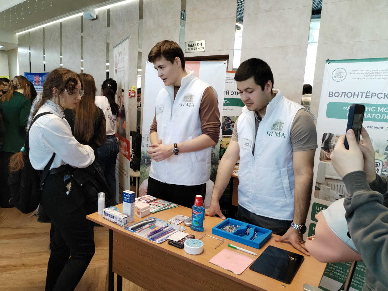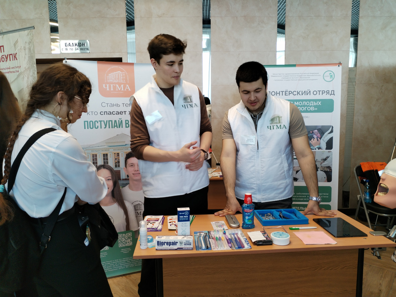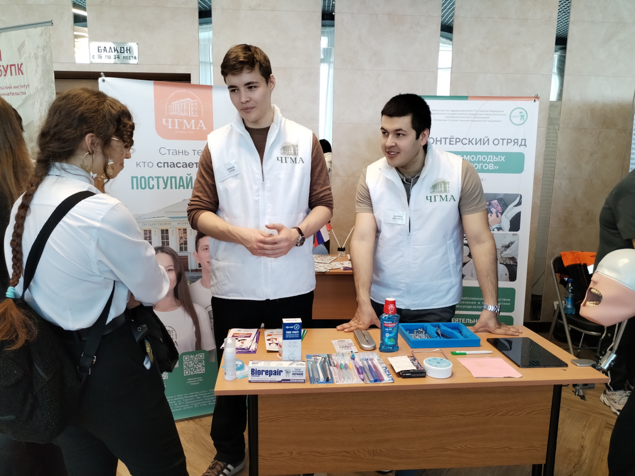Площадку ЧГМА представляли: начальник центра довузовской подготовки Беляева Людмила Михайловна и волонтёрские отряды: «Альянс молодых стоматологов», «Феникс» и «Альтаир». Школьников и гостей площадки ознакомили с особенностями обучения в медицинском вузе и провели для них увлекательные, очень познавательные мастер-классы по навыкам оказания первой помощи и уходу за полостью рта. Участники форума с большим удовольствием принимали участие во всех активностях и получили ответы на все интересующие их вопросы.