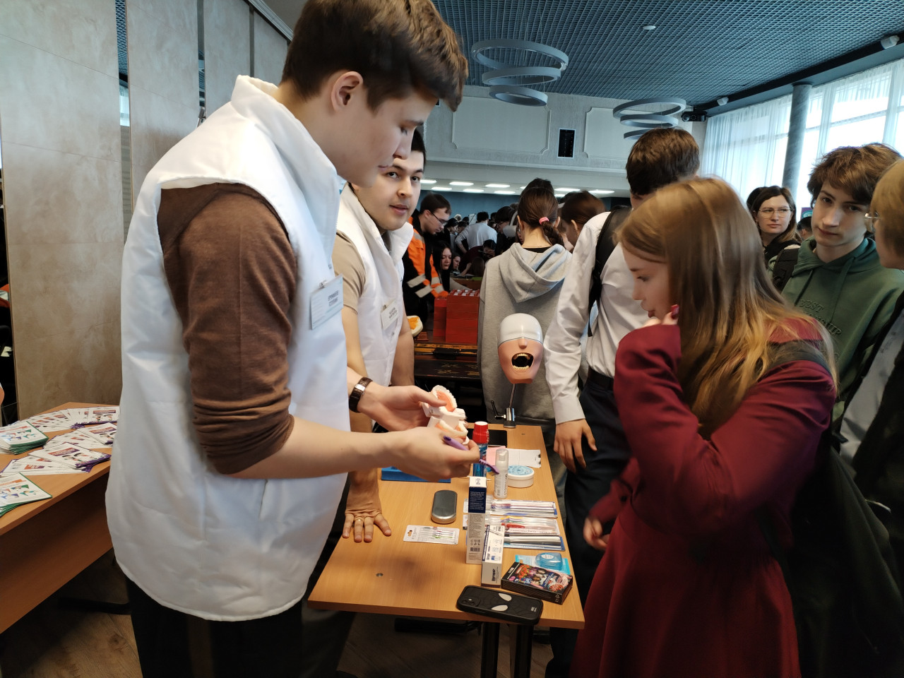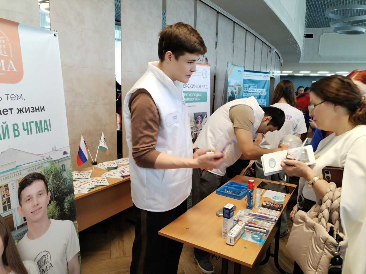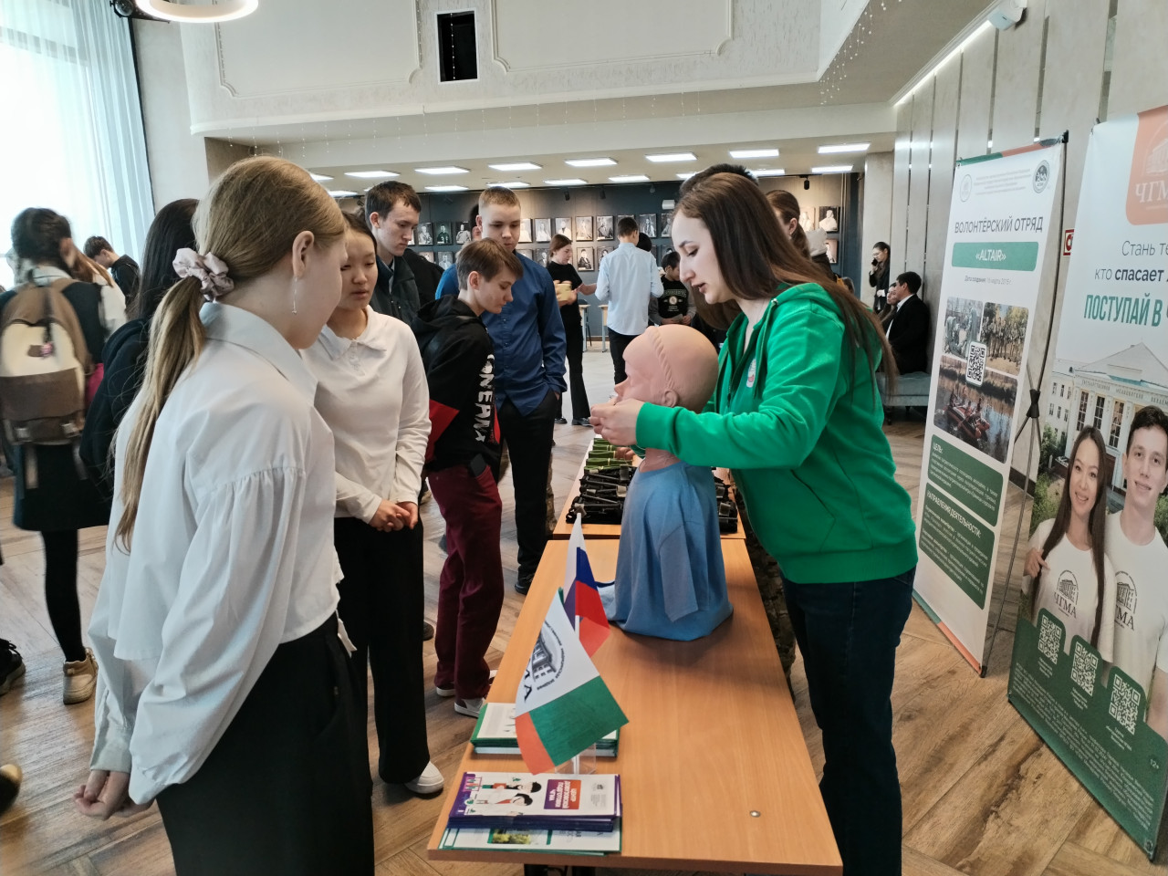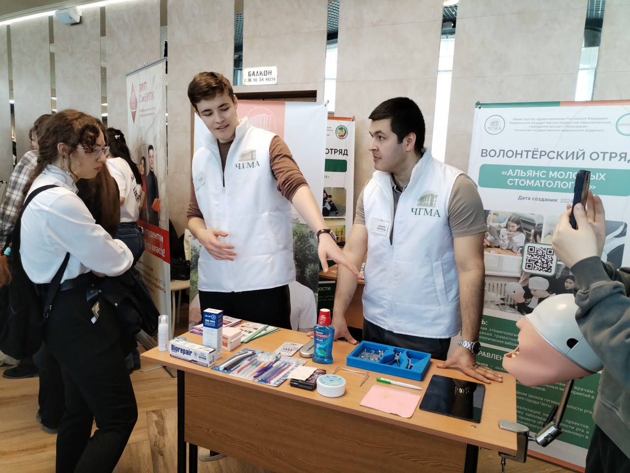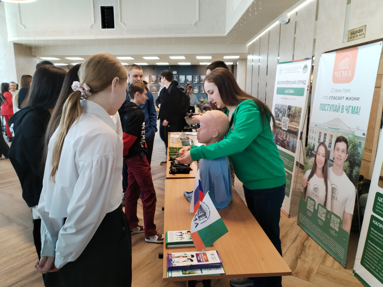 Площадку ЧГМА представляли: начальник центра довузовской подготовки Беляева Людмила Михайловна и волонтёрские отряды: «Альянс молодых стоматологов», «Феникс» и «Альтаир». Школьников и гостей площадки ознакомили с особенностями обучения в медицинском вузе и провели для них увлекательные, очень познавательные мастер-классы по навыкам оказания первой помощи и уходу за полостью рта. Участники форума с большим удовольствием принимали участие во всех активностях и получили ответы на все интересующие их вопросы.