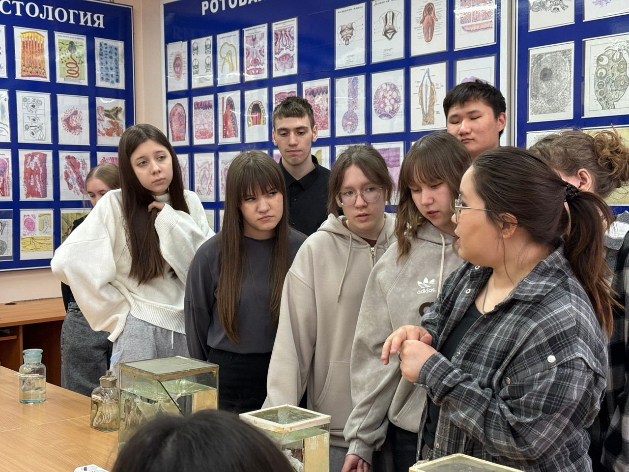 Завершилось всё интерактивным занятием по половому развитию на кафедре гистологии, эмбриологии и цитологии. Преподаватели кафедры в лице заведующего кафедрой, кандидата медицинских наук, доцента Валентины Игоревны Обыденко и ассистента кафедры Цындымы Болотовны Баясхалановой совместно с участниками научного кружка доступно и корректно осветили важные темы полового воспитания подростков на их языке, ответили на вопросы ребят и помогли сформировать научное понимание процессов.