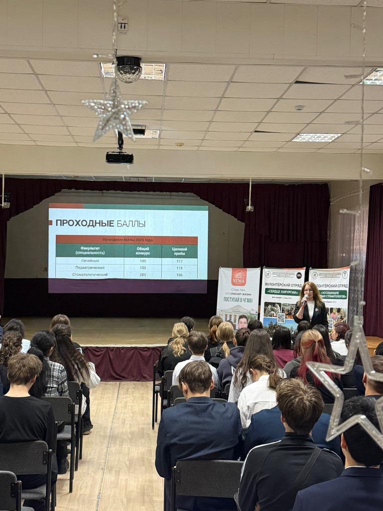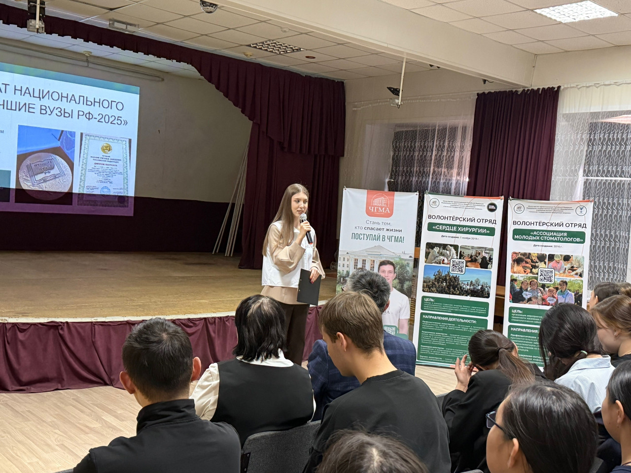 Администрация школы и ученики благодарят команду ЧГМА и волонтёров‑медиков за яркое, содержательное и вдохновляющее событие! Такие встречи помогают старшеклассникам сделать осознанный выбор будущей профессии и поверить в свои силы.