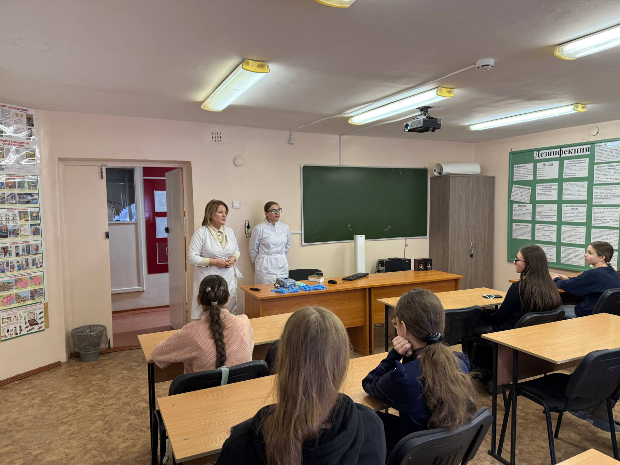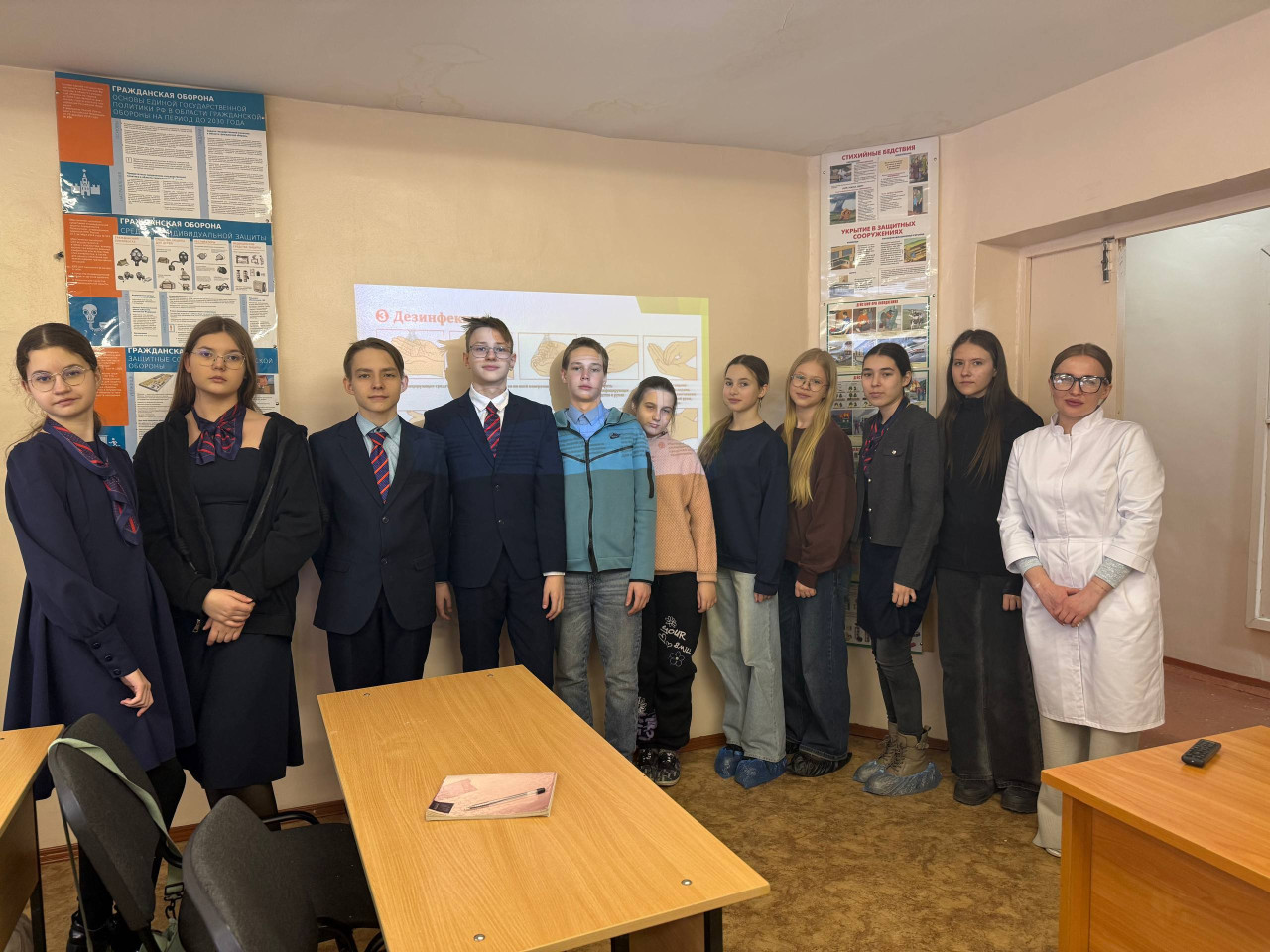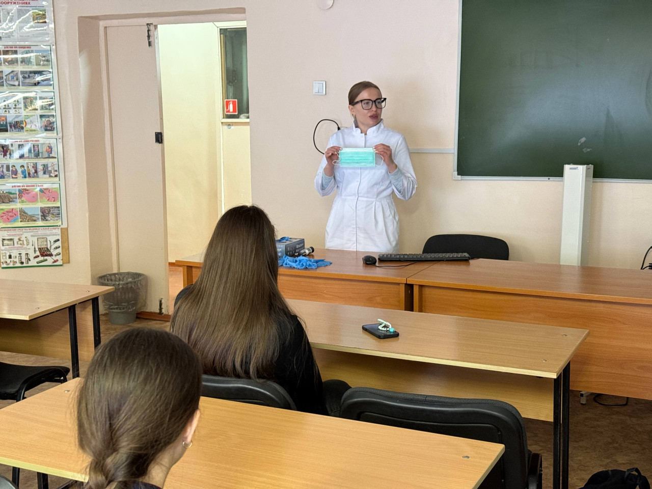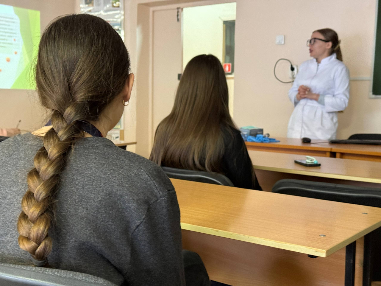 Далее юных медиков ждал экскурс в инфекционные заболевания. Ассистент кафедры Наталья Аркадьевна Костромина подробно рассказала о профилактике гриппа и ОРВИ. В доступной и увлекательной форме она объяснила: как передаются вирусные инфекции, какие меры профилактики наиболее эффективны в сезон простуд, почему важна своевременная вакцинация против гриппа, как правильно носить маску и проветривать помещения.