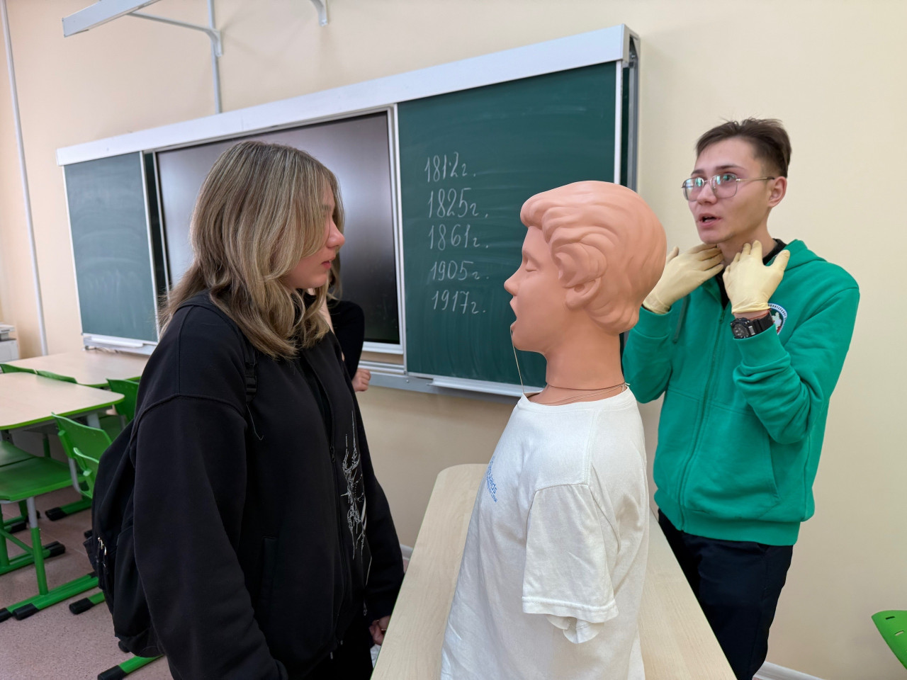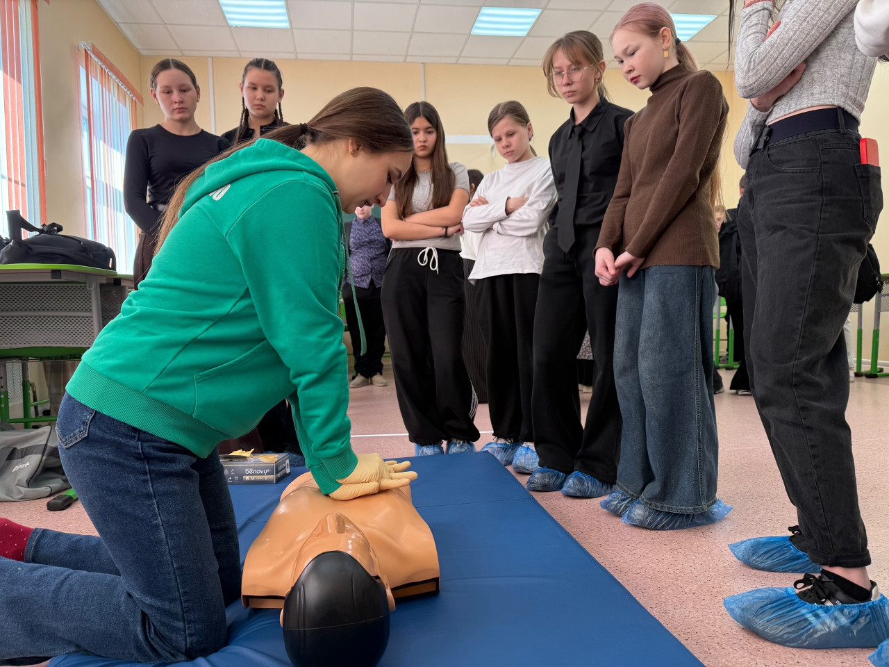 После знакомства с академией для школьников были подготовлены интерактивные площадки от студенческих отрядов. Ребята не просто слушали, а пробовали всё на практике! Участники волонтерского отряда "Феникс" показали юным школьникам основы неотложной помощи: они учились делать искусственное дыхание и закрытый массаж сердца на манекене, разбирали, как правильно накладывать жгут и останавливать кровотечения, а кроме того извлекать инородное тело из дыхательных путей. Эмоции — зашкаливали!
