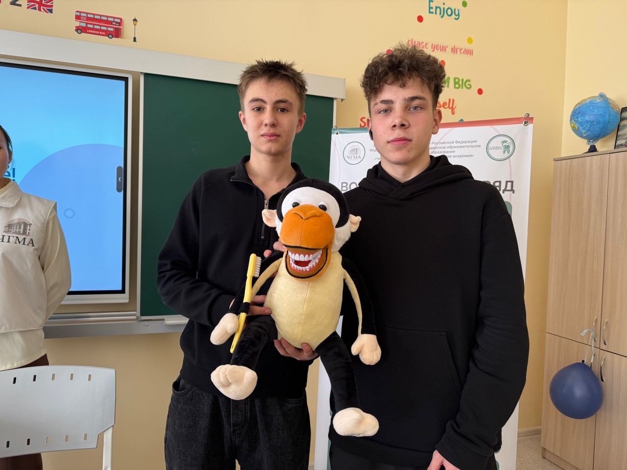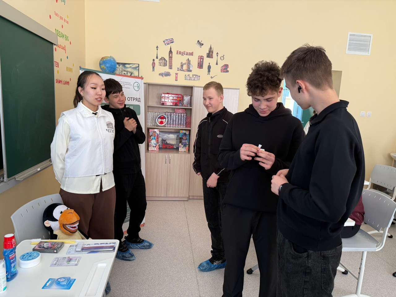 Студенты стоматологического факультета из отряда "Альянс молодых стоматологов" рассказали всё о гигиене полости рта: проверили наличие налёта с помощью специальных таблеток, показали правильную технику чистки зубов и даже удивили ребят учебным манекеном для отработки стоматологических навыков. Теперь точно никто не забудет про зубную щётку!
