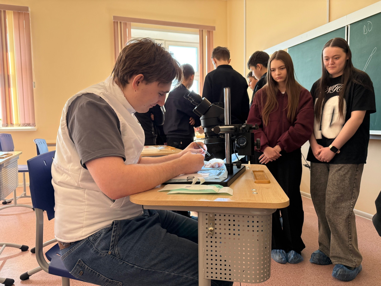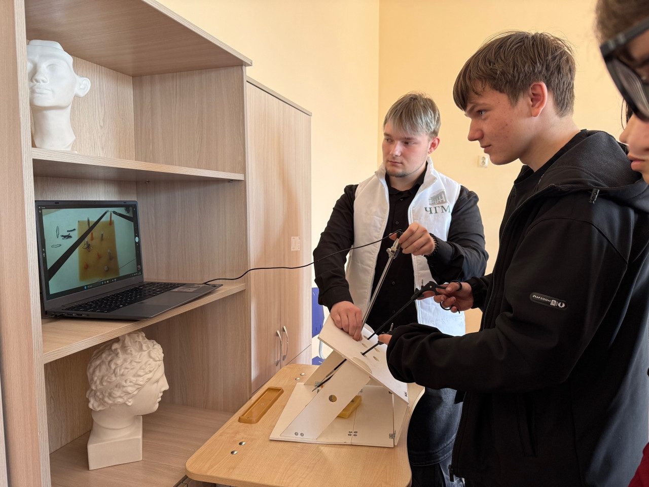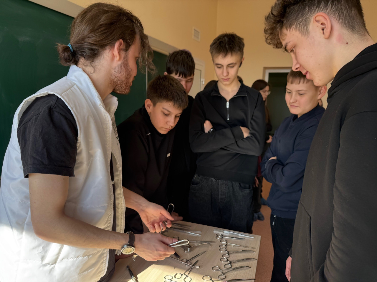 Команда волонтерского отряда "Сердце Хирургии" показала, как проводятся малоинвазивные операции: школьники увидели современные инструменты и узнали, как врачи делают сложные вмешательства с минимальными разрезами. Многие впервые поняли, что хирургия — это не только скальпель, но и высокие технологии!