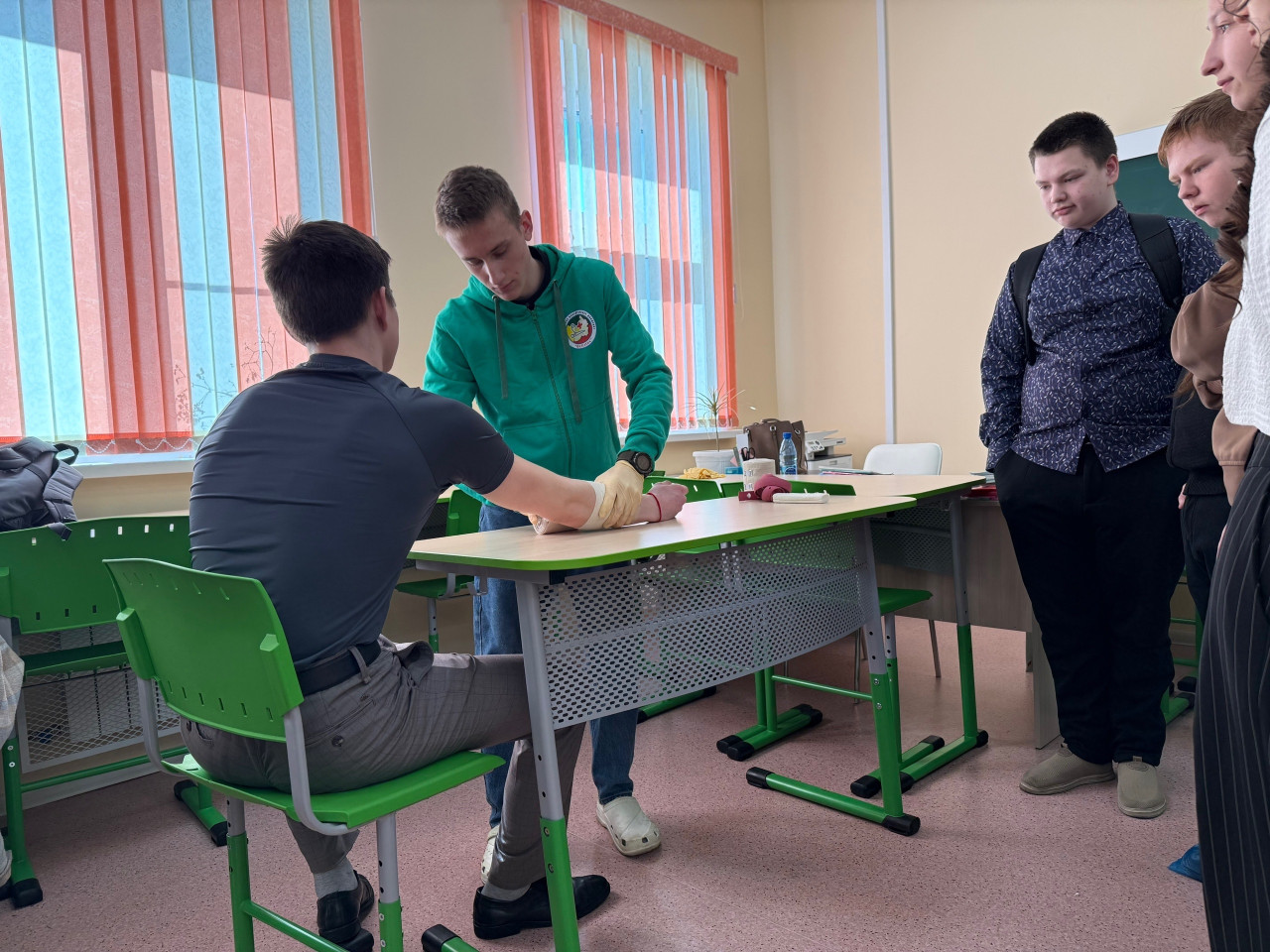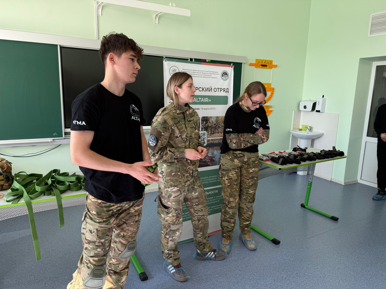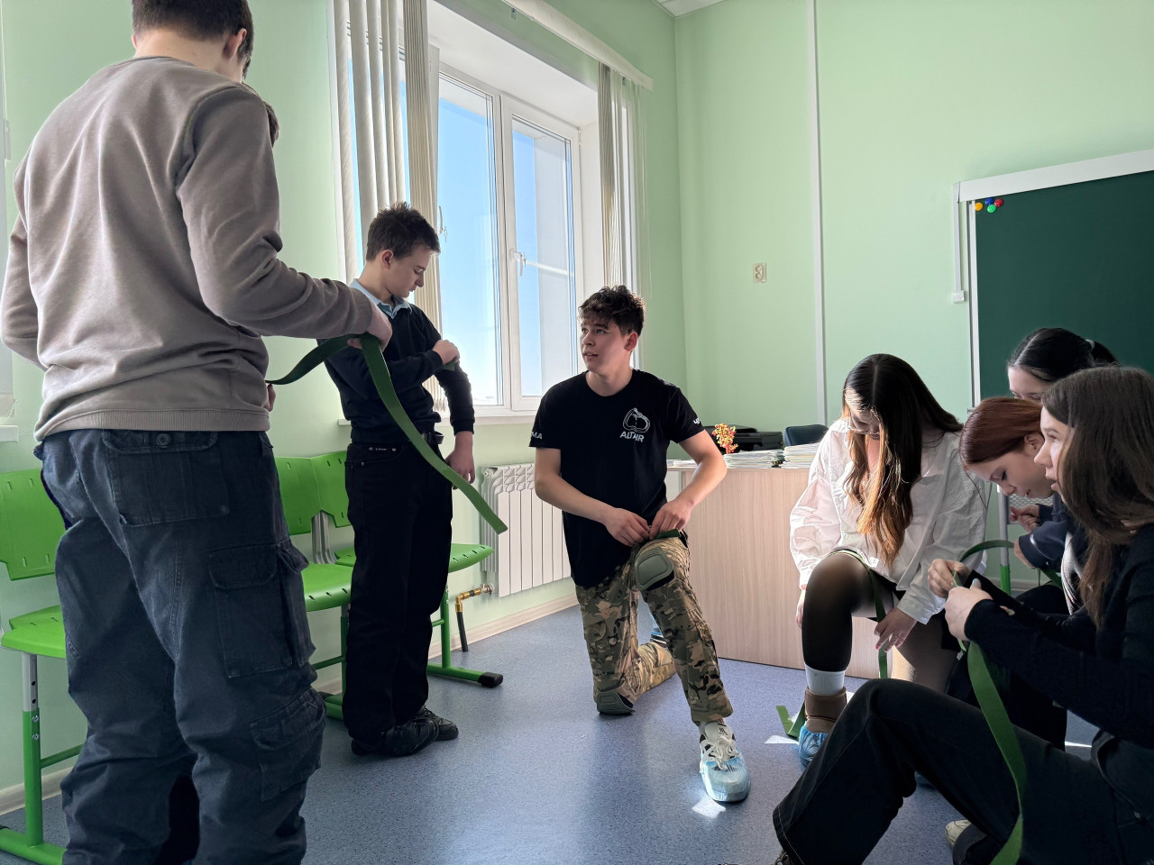 Ребята из волонтерского отряда "ALTAIR" демонстрировали оказание помощи в экстремальных условиях себе и своим товарищам. Школьники узнали как в полевых условиях останавливать кровотечения, тем самым спасти свою жизнь. Настоящий вызов для будущих спасателей!