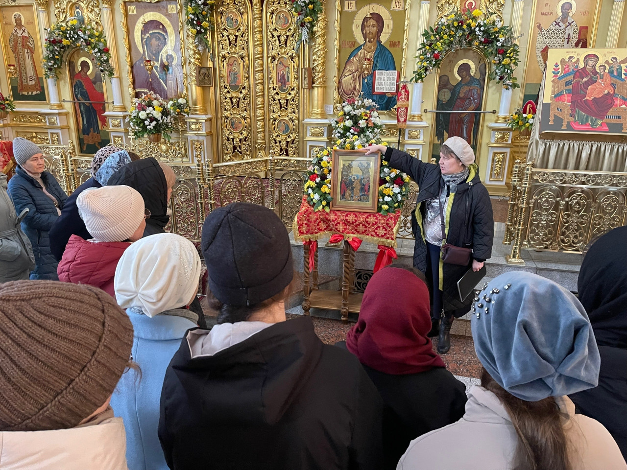 «Явление Воскресшего Господа Марии Магдалине», «Явление Ангела женам-мироносицам», «Уверение апостола Фомы», «Явление Христа апостолам Луке и Клеопе», «Сошествие Господа во ад», «Воскресение Христова» – эти иконы стали главными объектами экскурсовода. У каждой иконы свое место в росписи собора, важный смысл. Нужно уметь читать икону, тогда понятными становятся не только события, но и их связь с жизнью церкви. Яйцо, кулич и пасха. Почему они стали символами праздника? Почему цвет праздника красный? Почему на Пасху бьются яйцами? Вопросы, на которые не было ответов, стали прозрачными, ясными.