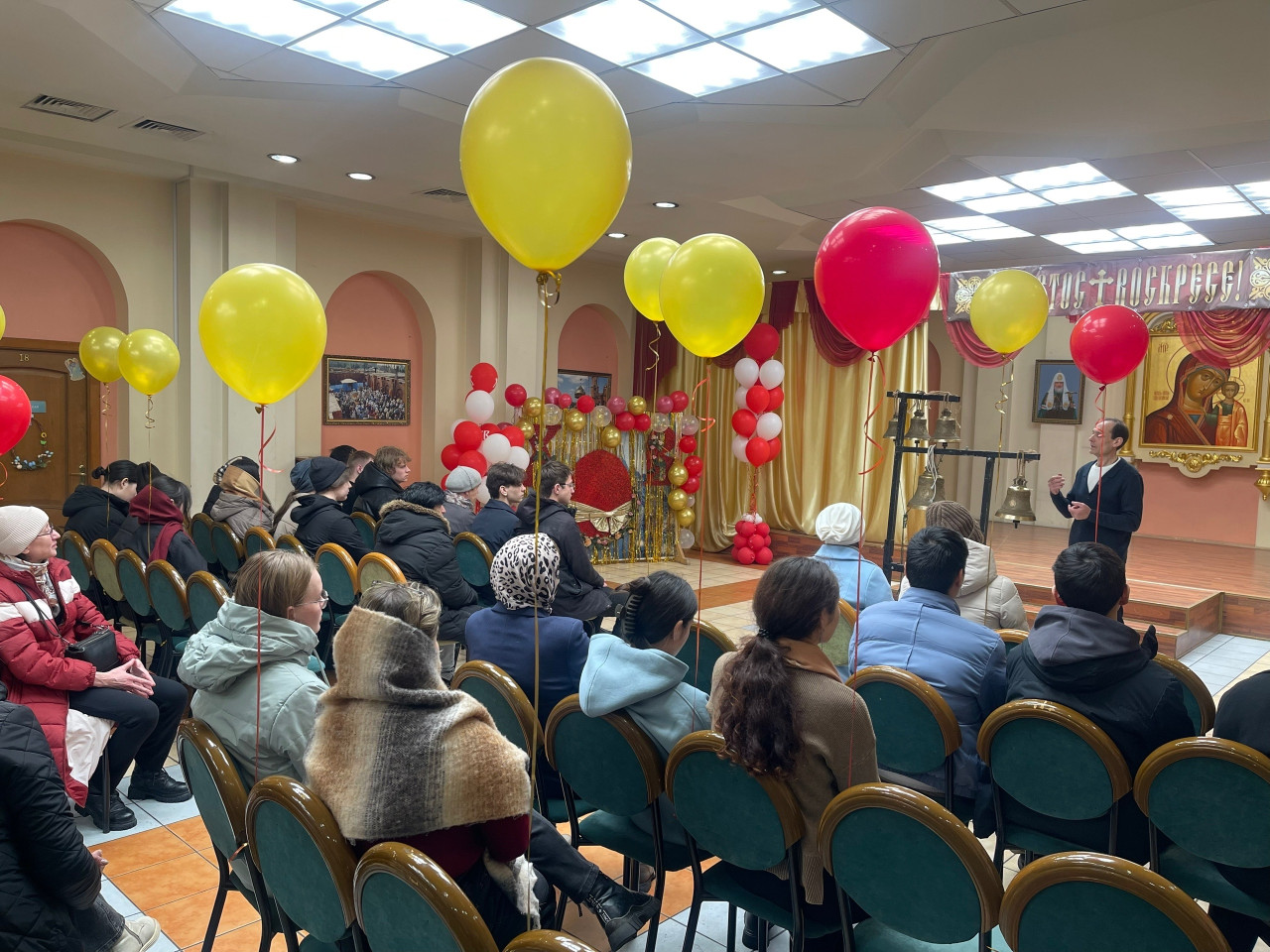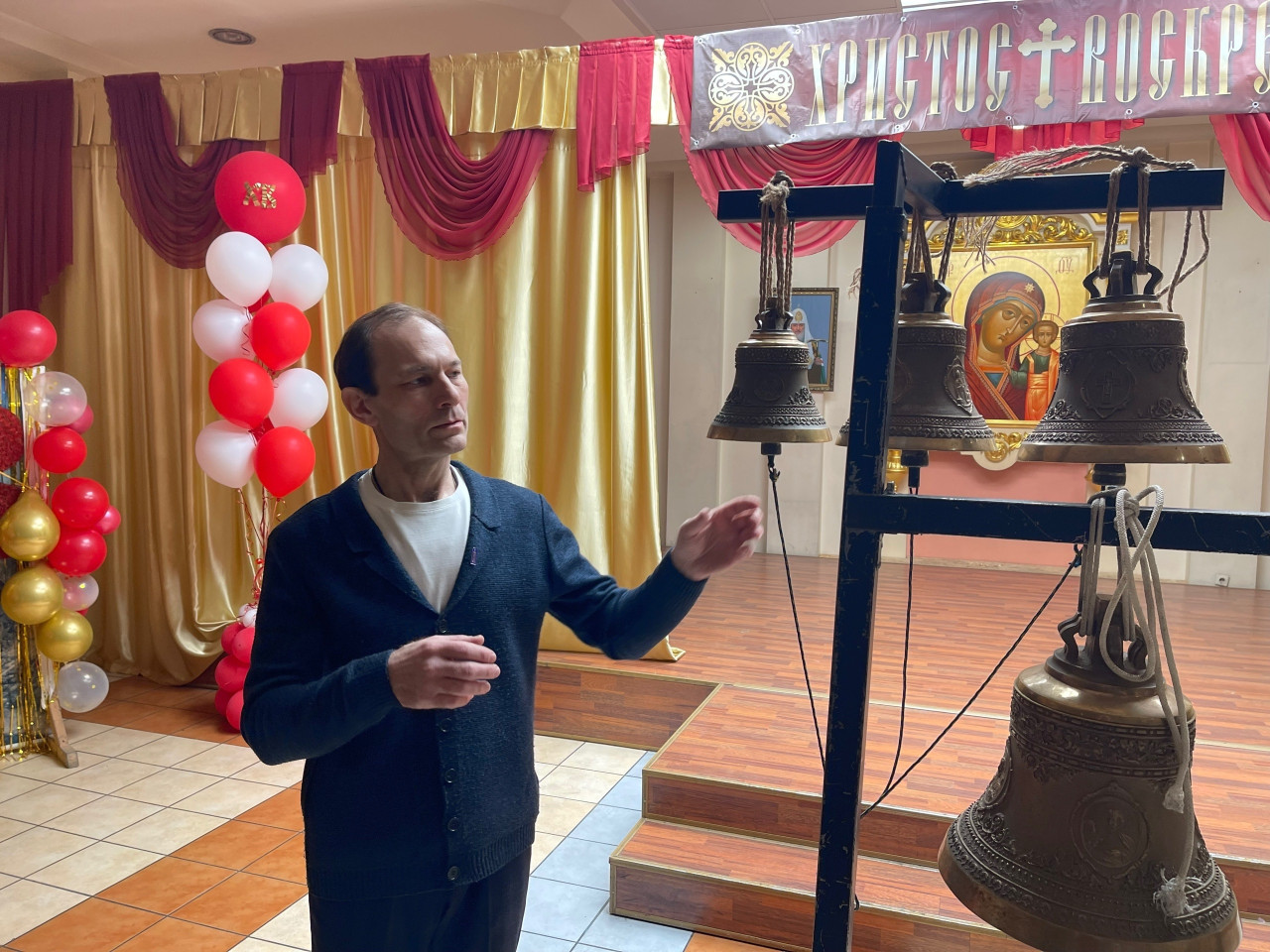 Закончилась Светлая седмица – неделя после Пасхи, когда весь мир принимал в сердца радостную весть о Воскресении Христовом. Центр русской культуры «Наследие» при ЧГМА пригласил студентов узнать о традициях колокольного звона, попробовать себя в роли звонаря, а также увидеть сюжеты иконописи, связанные с евангельскими событиями праздника Пасхи.