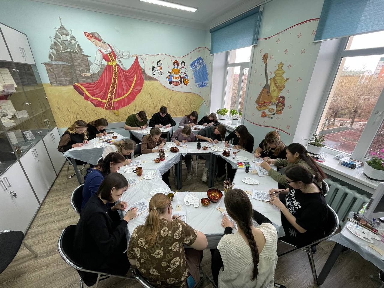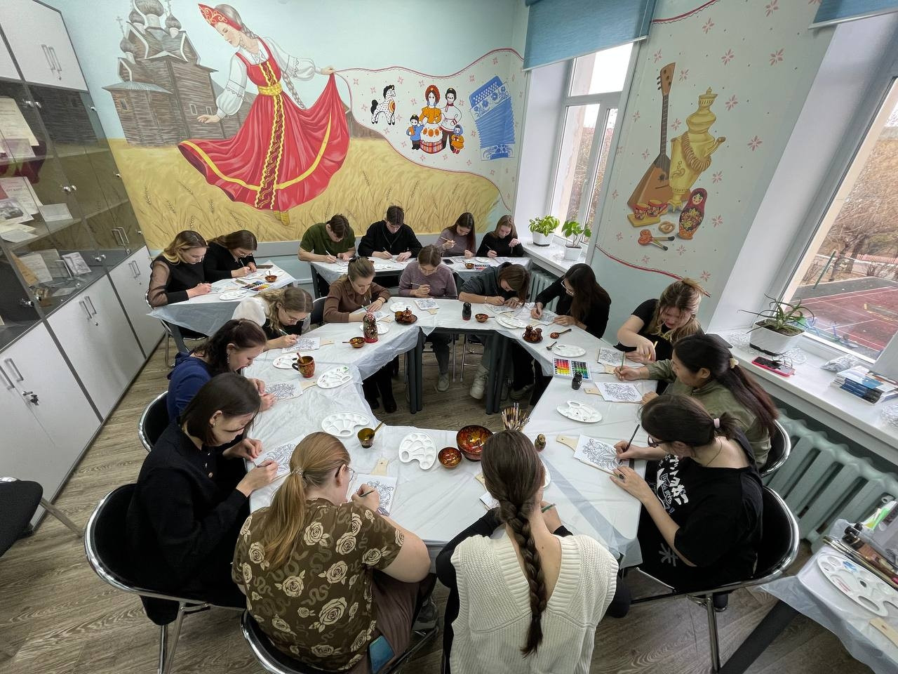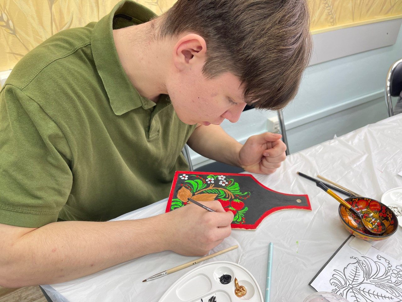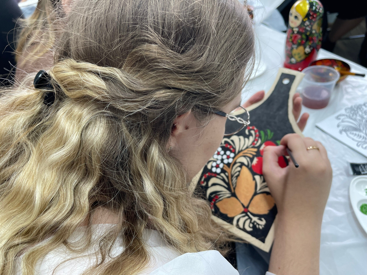 Студенты академии, участники мастер-класса, смогли почувствовать себя мастерами хохломского промысла. В их руках была деревянная доска, на которой нужно было создать основу черного цвета, а затем рисунок – ягоды и цветы. И вот на черном фоне заиграли яркие мазки. «Мне очень понравился мастер-класс, представила себя на Нижегородской земле мастером, художником. Это мой самый любимый русский узор», – отметила студентка 3 курса Алина Калугина.
