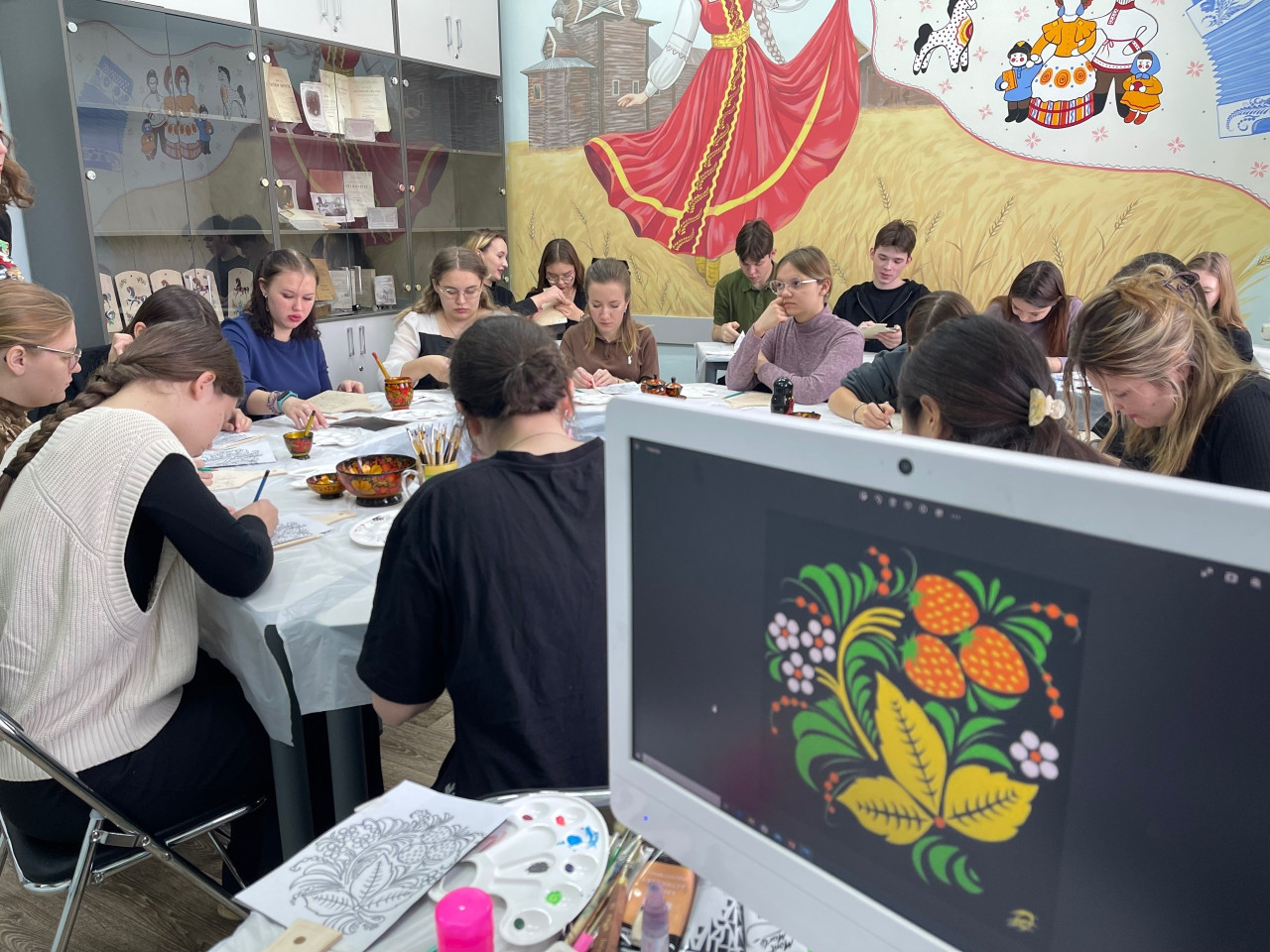 АбитуриентуАвтор одного из стихотворений, пораженный великолепными узорами хохломской росписи, написал: «Красотой своей неравной вдохновляет Русь сама; птицы, ягоды и травы – золотая хохлома!». Действительно, хохлома вдохновляет. Именно об этом рассказала участникам творческой мастерской «Корни русской культуры: хохломская роспись» Екатерина Ляшенко, кандидат культурологи, член Творческого союза художников России, которая и провела мастер-класс. Вдохновляет хохлома своей древней историей, цветом, техникой изготовления.