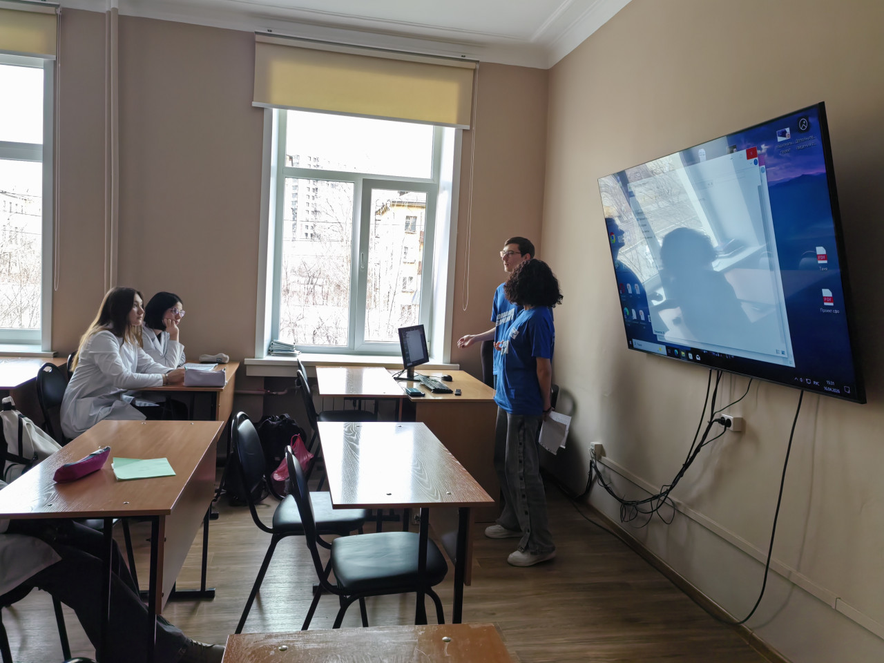 Перед началом просмотра перед студентами выступили представитель патриотического клуба академии «Правнуки Победы» Сергей Кудрявцев и Микаилова Алина от федерального проекта «Родина Мы» («Молодая Гвардия Единой России»). Они представили небольшую презентацию, рассказав о сути проекта и значении памятной даты.