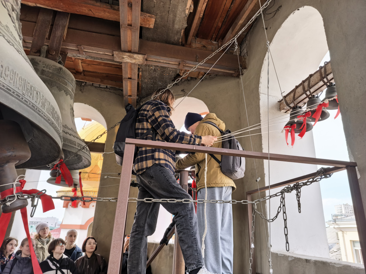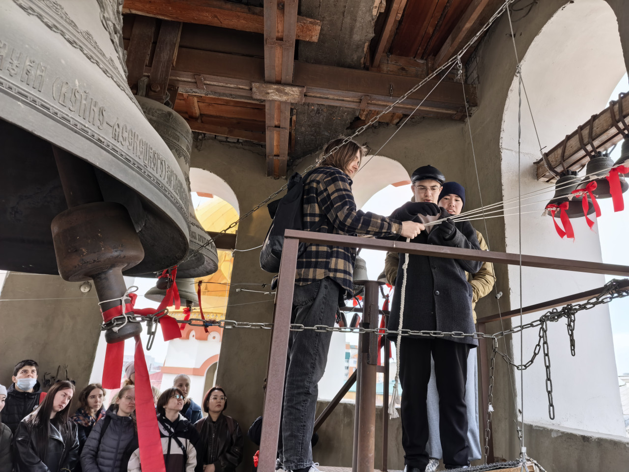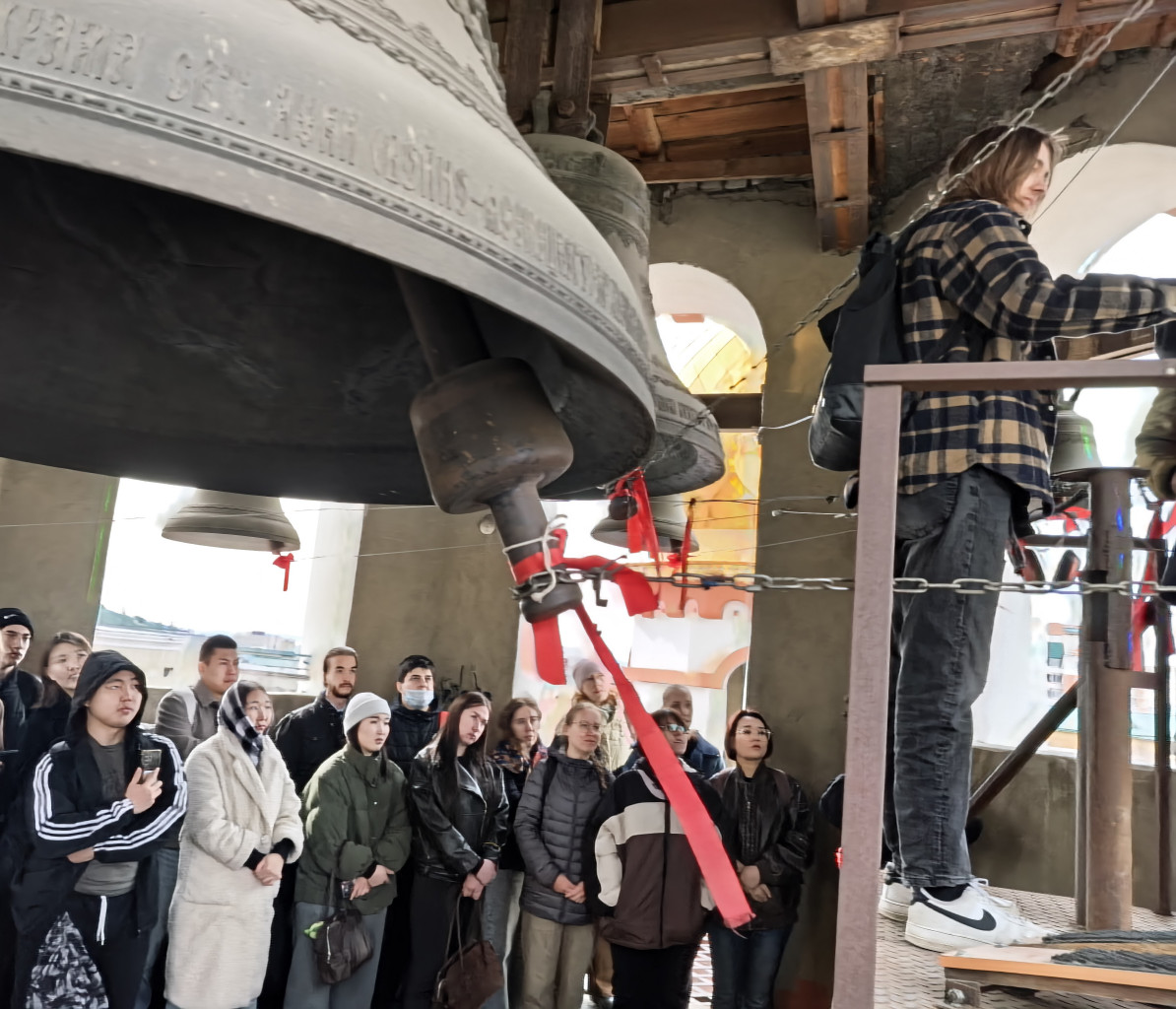 Финалом экскурсии стало посещение студентами колокольни и соприкосновение с колокольным звоном: все желающие смогли позвонить в колокола.