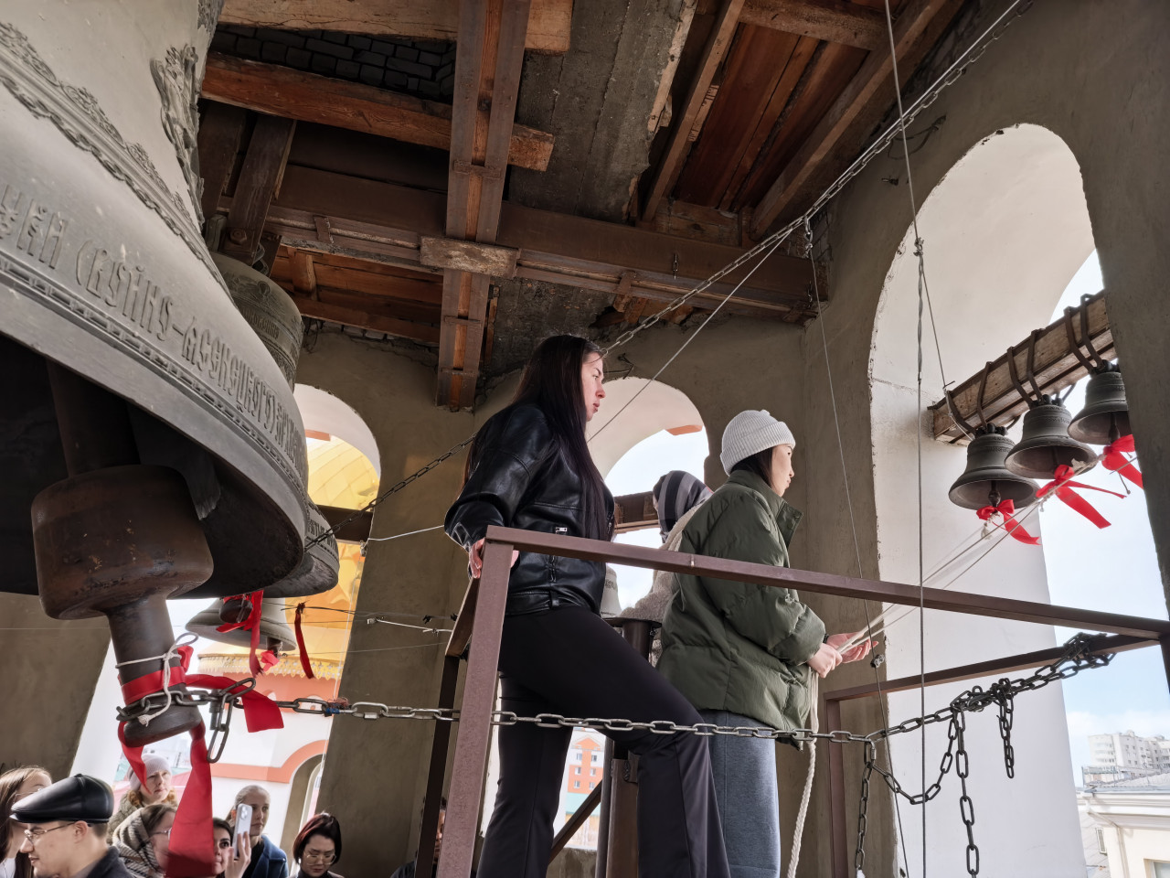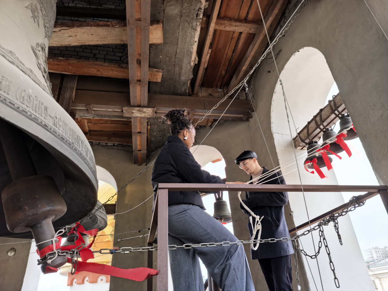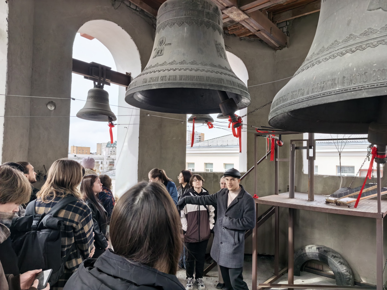 Финалом экскурсии стало посещение студентами колокольни и соприкосновение с колокольным звоном: все желающие смогли позвонить в колокола.