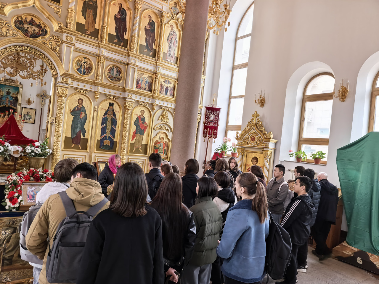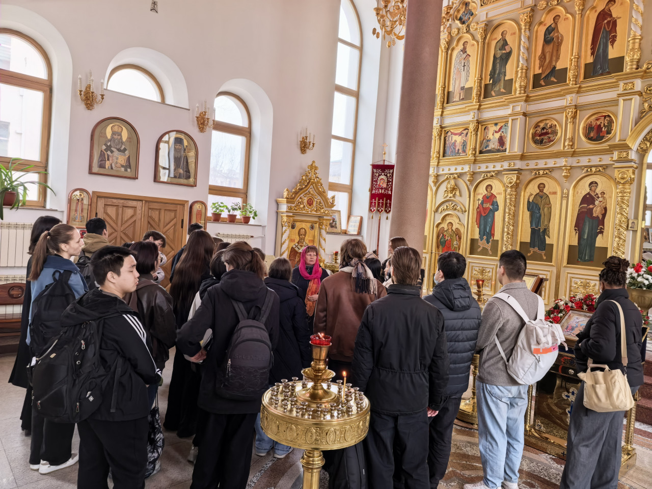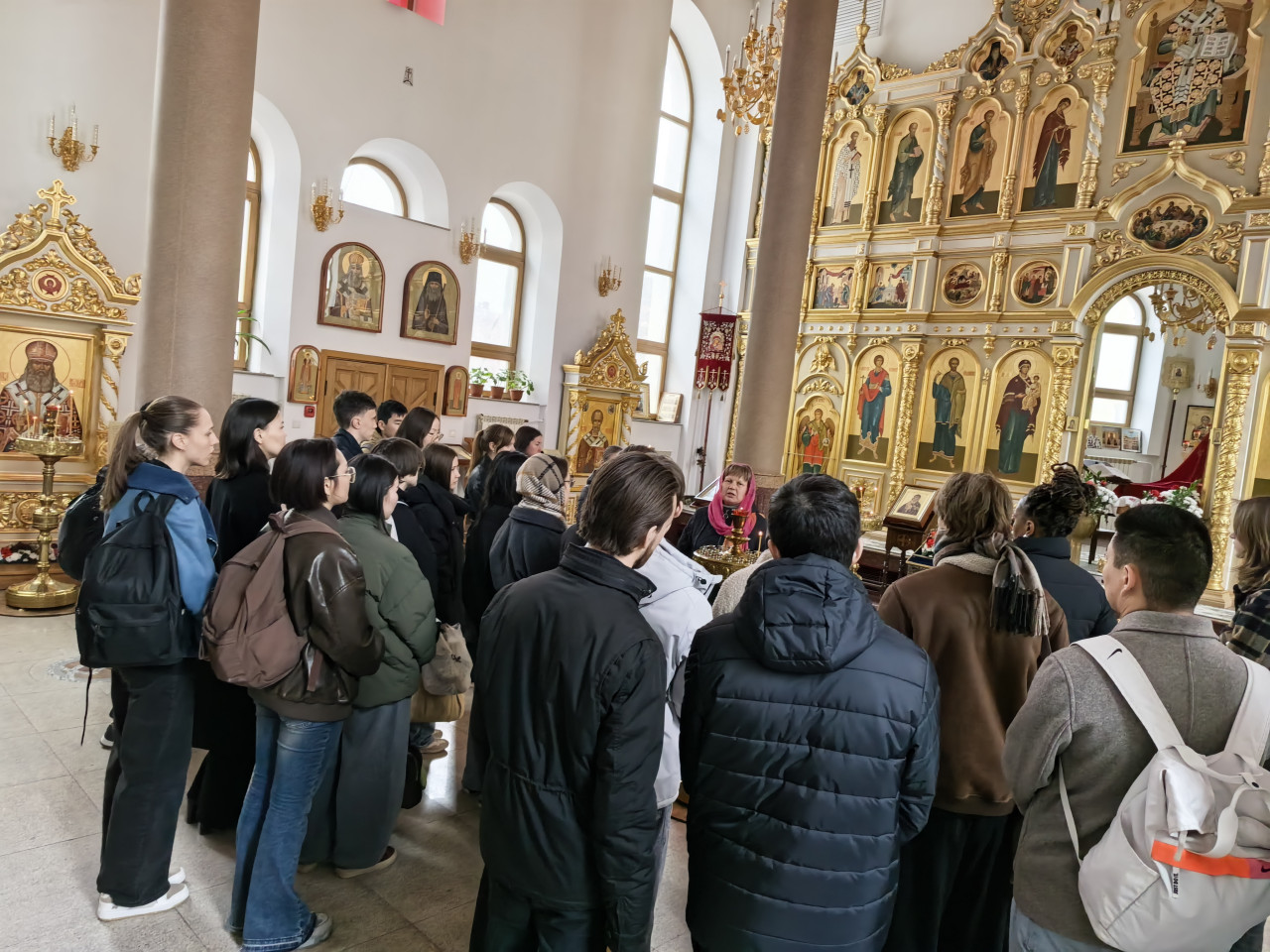 Наравне с Пасхальными традициями и духовным значением Пасхи, иконографией праздника, студенты познакомились с историей храма, его гимназическим предшественником, внешним и внутренним устройством храма, символикой цвета. Особое внимание было уделено святым покровителям врачей и врачевания, на примере которых можно и нужно учиться милосердию, вере и служению. Это святой Лука Крымский, целитель Пантелеймон, бессребреники Косьма и Дамиан. Экскурсовод Ирина Васильева поведала студентам кратко о житиях святых, подвигах святых врачей, чудесах исцеления. Уделено было внимание было и св. Сергию Радонежскому - покровителю учащихся, вмч. Татьяне - покровительнице студентов, а также прп. Варлааму Чикойскому – покровителю земли Забайкальской. Экскурсовод пояснила устройство иконостаса, традиции осенения крестным знамением, некоторые таинства церкви.