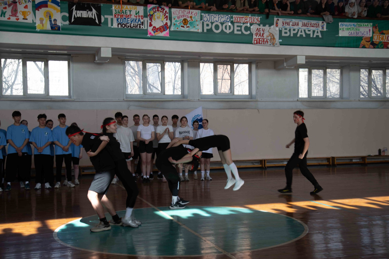 Завершающим аккордом стали выступления команд болельщиков: студенты пели, танцевали и показывали номера, пронизанные любовью к Родине, краю, вузу и общежитию. Жюри было тронуто до глубины души: за каждым номером стояла кропотливая работа, сплочённость и искренняя отдача. В качестве особого подарка для всех участников и гостей финала выступили творческие коллективы академии: студия танца "Эриданс" и танцевальный коллектив "Хара Морин" поразили зрителей изящными современными композициями, бурятский национальный студенческий ансамбль "Ургы" им. Э.А. Раднаева и студенческий ансамбль народов Кавказа "Эхо гор" представили колоритные национальные танцы, подчеркнув многообразие культур в студенческой среде. Выступления коллективов стали настоящим украшением финала и создали праздничную атмосферу единства и творчества.